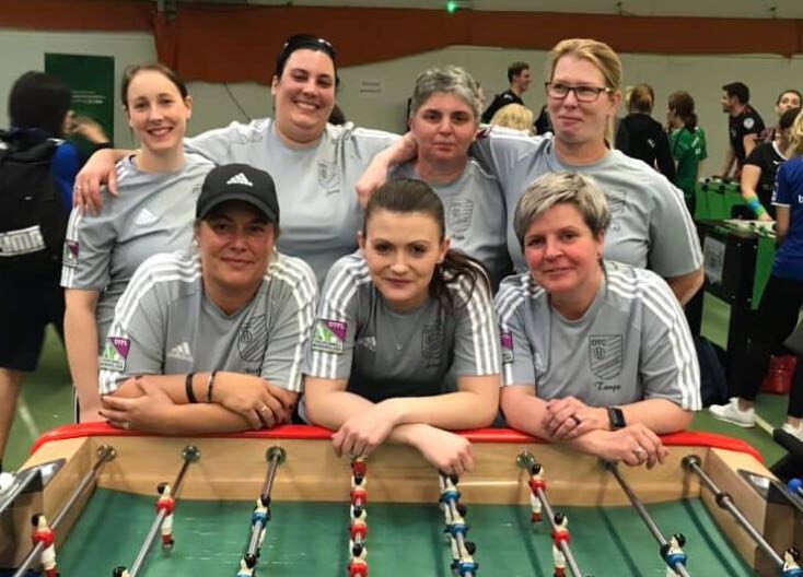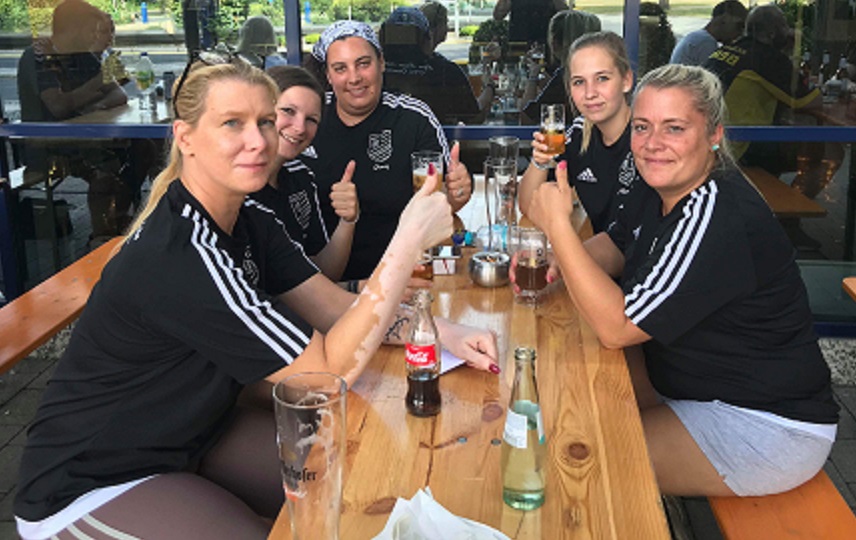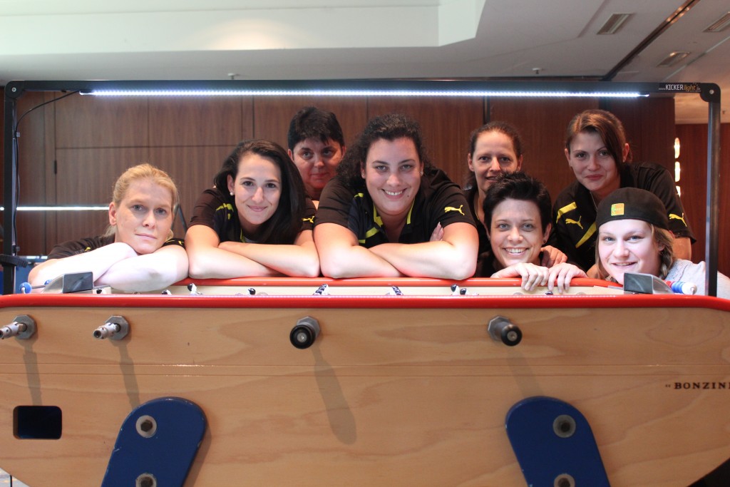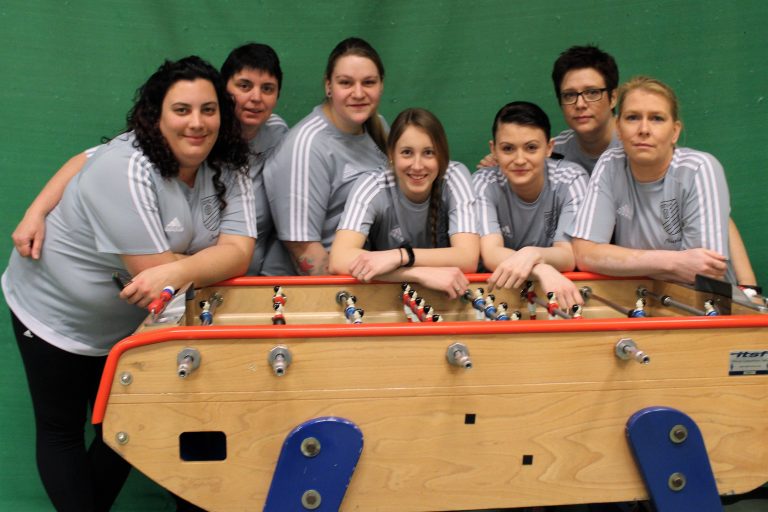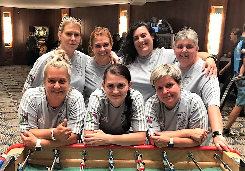 Platz 9 nach verlustpunktfreier Zwishenrunde. Hinten von links: Nicole Gabriel, Elke Heinz-Thiry, Jennifer Fuchs, Anja Lempas. Vorne: Nicole Limburg, Katrin Hinsberger und Tanja Port. Auf dem Foto fehlt Sinja Petrizik.Die Saar-Soccer-Ladies am Vorrundenspieltag – hinten von links: Sinja Petrizik, Jennifer Fuchs, Anja Lempas und Niceol Gabriel; vorne: Nicole Limburg, Katrin Hinsberger und Tanja Port. Verletzt fehlt: Elke Heinz-Thiry.