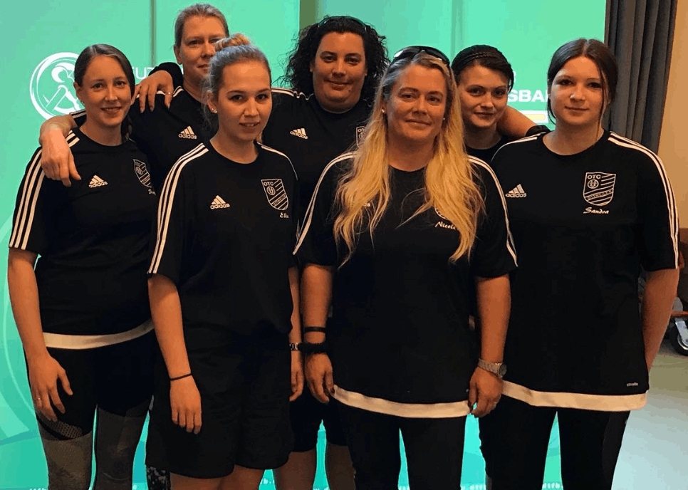 Ungeschlagen Meister der 2. Damenbundesliga: Maryam Aly, Nicole Gabriel, Alexia Depagne, Severine Tran Thanh, Anja Lempas (stehend von links), unten: Elke Heinz-Thiry, Daniela Gerhardt und Fanny MartineauDas Team am Vorrundenspieltag von links: Anja Lempas, Elke Heinz-Thiry, Nicole Gabriel, Alexa Depagne, Severin Tran Thanh (stehend) und Daniela Gerhardt, Clara Barbey und Fanny Martineau (im Vordergrund)