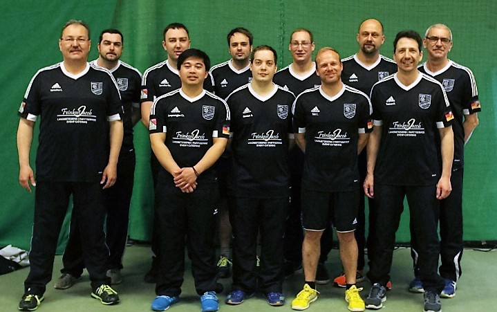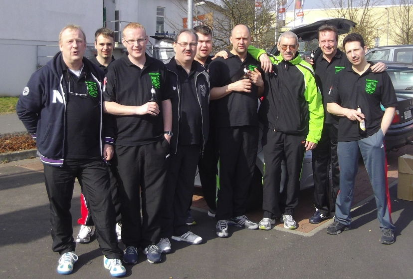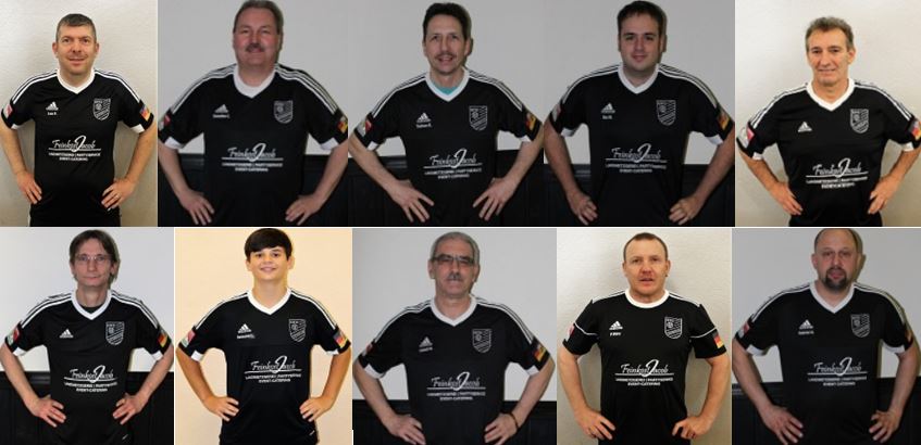 Am Vorrundenspieltag vorne: Rüdiger Treinen und Wolfgang Lawall links, rechts Kai Sick. Hintere Reihe von links: Rainer Sitzmann, Claus Cornelius, Ralph Bach, Peter Müller, Christopher Cornelius, Norman Hobick und Marco Kuc.Am Finalspieltag in der hinteren Reihe von links: Christopher Cornelius, Norman Hobick, Rainer Sitzmann, Josef Cornelius und Peter Müller. Mitte: Ralph Bach, Kai Sick, Wolfgang Lawall und Claus Cornelius. Vorne: Ulf Gabriel und Marco Kuc.