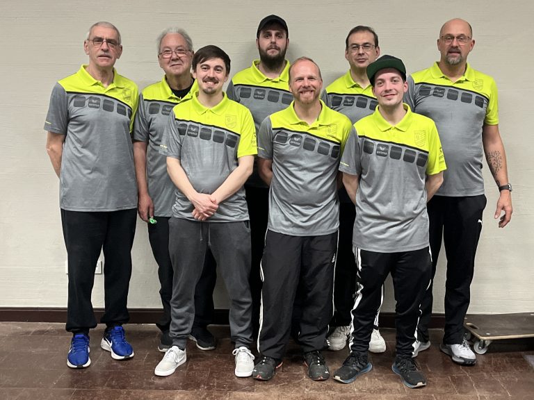 Meister der Regionalliga Süd 2024 von links: Wolfgang Lawall, Josef Cornelius, Nils Olze, Carsten Sahner, Kai Sick, Eric Baussan, Alexander Becker (Coach) und Ulf Gabriel. Es fehlen Claus Cornelius und Manfred Lang