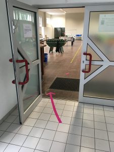• Zu und von den Tischen sind zur Wahrung der Abstandsregel die gekennzeichneten Wege zu benutzen.