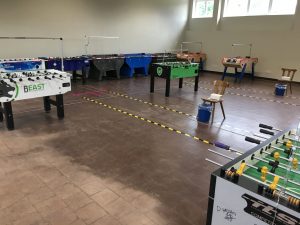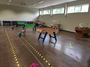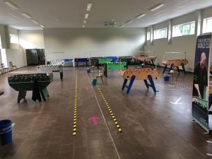 Seit 08.06.20 läuft im OTC-Trainings- und STFV-Landesleistungszentrum wieder der Trainingsbetrieb. Allerdings sind auch im Tischfußball in Folge der Pandemie Abstands- und Hygieneregeln zu beachten. In Folge dessen waren bis dato nur Einzelspiele erlaubt. Mit der Stadt Ottweiler wurde nunmehr eine weitere Lockerung abgestimmt, wonach ab sofort auch der Doppelspielbetrieb wieder zugelassen ist. Weiterhin gilt Maskenpflicht beim Spiel. Die detaillierten aktuellen Trainingsgrundsätze sind hier nachzulesen. Durch die Erleichterungen hoffen die Verantwortlichen von OTC und STFV auf mehr Betrieb in der alten Markthalle. Um weitere Lockerungen zu ermöglichen, ist die Ausstattung der Tische mit Spuckschutzwänden in Arbeit.