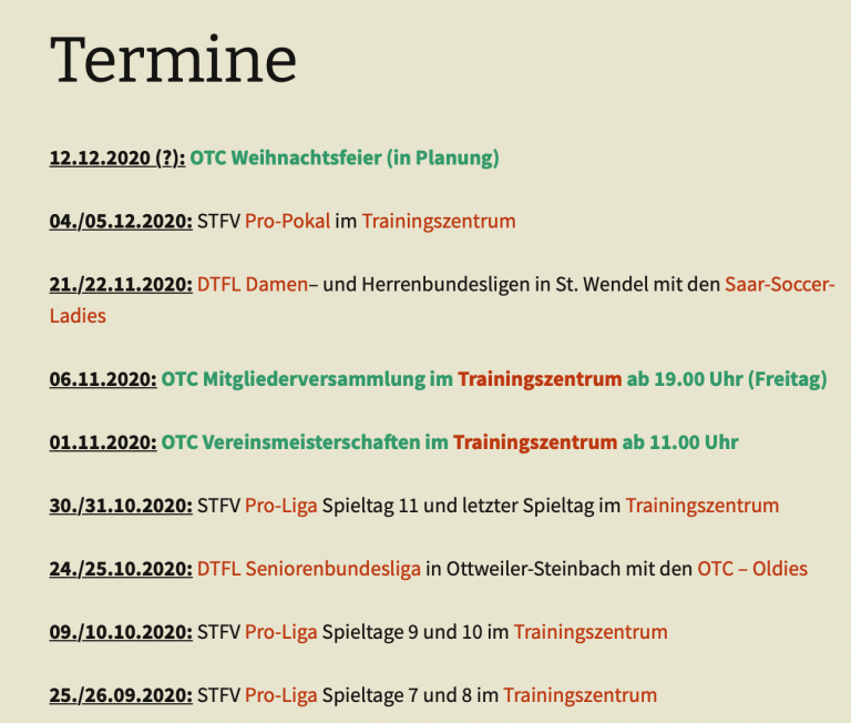 Die Verantwortlichen von OTC und STFV hoffen das OTC Trainings- und STFV Landesleistungzentrum im Dezember wieder für den Trainings- und den Spielbetrieb öffnen zu können. Infos erfolgen rechtzeitig über die gewohnten Kanäle. Bleibt alle gesund und helft mit eurem persönlichen Verhalten diese schwierige Zeit zu bewältigen.