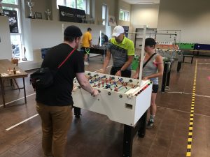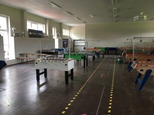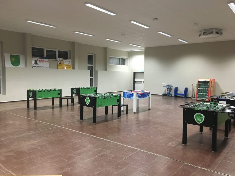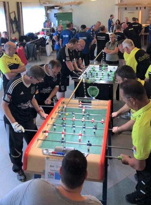 In einer der Hallen Im Alten Weiher ist auch das Landesleistungszentrum diese Sportart eingerichtet. Der Spaß rund um den Kickertisch ist an diesem Tage dann auch dort fortgesetzt worden. Mehr Infos? https://dtfb.de/kickern/komm-kickern/