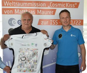 Bisher war der OTC Ottweiler e.V. regional, national und international unterwegs. Im Herbst wird der Horizont nun mit einer galaktischen Reise erweitert. Matthias Maurer fliegt als erster Saarländer ins All und nimmt den OTC auf seinem Trikot mit. Im Rahmen der Weltraummission „Cosmic Kiss“ wurde der Ottweiler Tischfußball Club für die Teilnahme ausgewählt und hat einen Platz auf dem Trikot des saarländischen Astronauten ergattert. Bei offiziellen Liveübertragungen aus dem All wird Matthias Maurer das Trikot der Weltöffentlichkeit präsentieren und damit seine Verbundenheit zum saarländischen Sport dokumentieren. Die offizielle Präsentation des Trikots ist in Planung. Als sichtbares Zeichen der Teilnahme an der Aktion hat der traditionsreiche Club aus der Residenzstadt Patches mit dem Missionsabzeichen erhalten, die zumindest während des Sportjahres 2021 auf den Vereinstrikots getragen werden. Die Damen und Senioren des OTC Ottweiler e.V. werden während DTFL – Bundesligabegegnungen, die jetzt hoffentlich starten können, mit dem Tragen der Patches auf die erste saarländische Weltraummission Deutschland weit aufmerksam machen. Der OTC ist stolz Teil dieser außergewöhnlichen Aktion zu sein.
