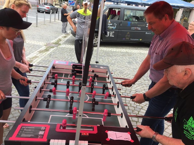 Danke Ralf für die bewährte Unterstützung bei der Durchführung dieser Aktion. Ein Dank geht auch an den Bürgermeister, Holger Schäfer, sowie an alle Gäste und Besucher, die zum Gelingen der Aktion beigetragen haben. Besondere Erwähnung haben natürlich die Initiatorin, Nele Neumann, und ihr Begleite, Marc Schweder, die zusammen durch ganz Deutschlande reisen verdient. Eine super Sache! #kickerbus