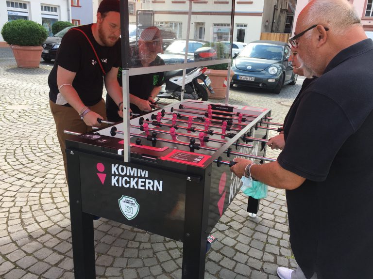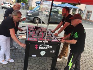Am 26./27.08.21 startet der Weltrekord-Versuch in Sachen Tischfußball. Ziel ist die meisten Kickerspieler:innen innerhalb von 24 Stunden an verschiedenen Orten weltweit – natürlich auch in Ottweiler – beim Tischfußball spielen zusammen zu bekommen. Im Rahmen der Promotion des Rekordversuchs fährt der „Komm Kickern“ – Bus quer durch Deutschland. Nach dem Stopp in St. Wendel ist der nächste Halt in Ottweiler am Schlosshof. Am Mittwoch, 07.07.21, ab 16.00 Uhr öffnet sich die Klappe des Gefährts und fördert ein Tischfußballspiel ans Tageslicht. Das Tourteam hält Überraschungen rund um den Tischfußballsport bereit. Natürlich darf auch Tischfußball gespielt werden. Ein kleines Turnier soll einen Vorgeschmack auf den Weltrekord-Event liefern. Bei entsprechender Anzahl von Interessenten werden natürlich auch die Pforten des OTC Trainings- und STFV Landesleistungszentrums geöffnet. Die Tischfußball begeisterte Öffentlichkeit – und auch die wenigen Anderen – sind recht herzlich eingeladen. Let´s  foos! Detaillierte Infos gibt es unter www.komm-kickern.de. Und so hat der Kicker-Bus im Juni ausgesehen: