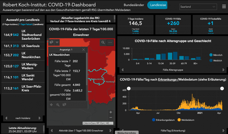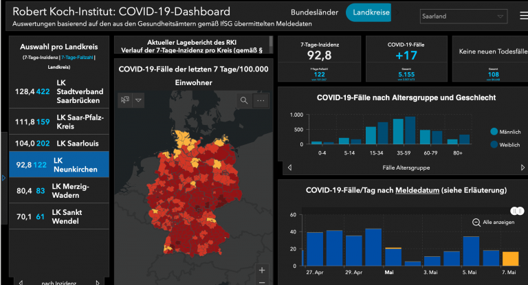 Erfreuliche Nachrichten für die Tischfußballgemeinde im Saarland: erstmals ist die Inzidenzrate im Landkreis Neunkirchen unter 100 gefallen. Nach dem aktuellen und stabilen Abwärtstrend von 154 am 25.04. über 125 am 06.05. wurde vom RKI heute eine Inzidenz von 92,8 veröffentlicht.