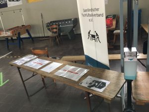 An den vergangenen beiden Trainingstagen wurde er schon eifrig bespielt. Einzelheiten des in Zusammenarbeit mit Ullrich-Sport insbesondere für den saarländischen Tischfußballsport entwickelten Tisches sind auf https://tisaar.shop und https://www.facebook.com/Tisaar-Tischfußball-Saar-1706199819481734/ zu finden.