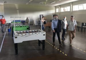 Am Mittwoch, 08.09.21, war es endlich soweit: Die Hallen „Im alten Weiher“ konnten samt Tribünenneubau offiziell eingeweiht werden. Der Ottweiler Bürgermeister, Holger Schäfer, sprach insbesondere der Wirtschaftsministerin und dem Innenminister seinen Dank für die ideelle und finanzielle Unterstützung aus. Den geladenen Vereinsvertretern dankte er ganz besonders für die Geduld für die rund 8-jährige Planungs- und Bauzeit. Im Zuge der Einweihung überreichten die Vertreter des OTC Ottweiler e.V. dem Bürgermeister für sein stets offenes Ohr für den Verein und den Tischfußballsport im Saarland ein Bild von der sehr erfolgreichen OTC WM – Delegation 2019, von der alle 6 Teilnehmer zumindest 1 Medaille aus Murcia mit in die Residenzstadt gebracht haben.